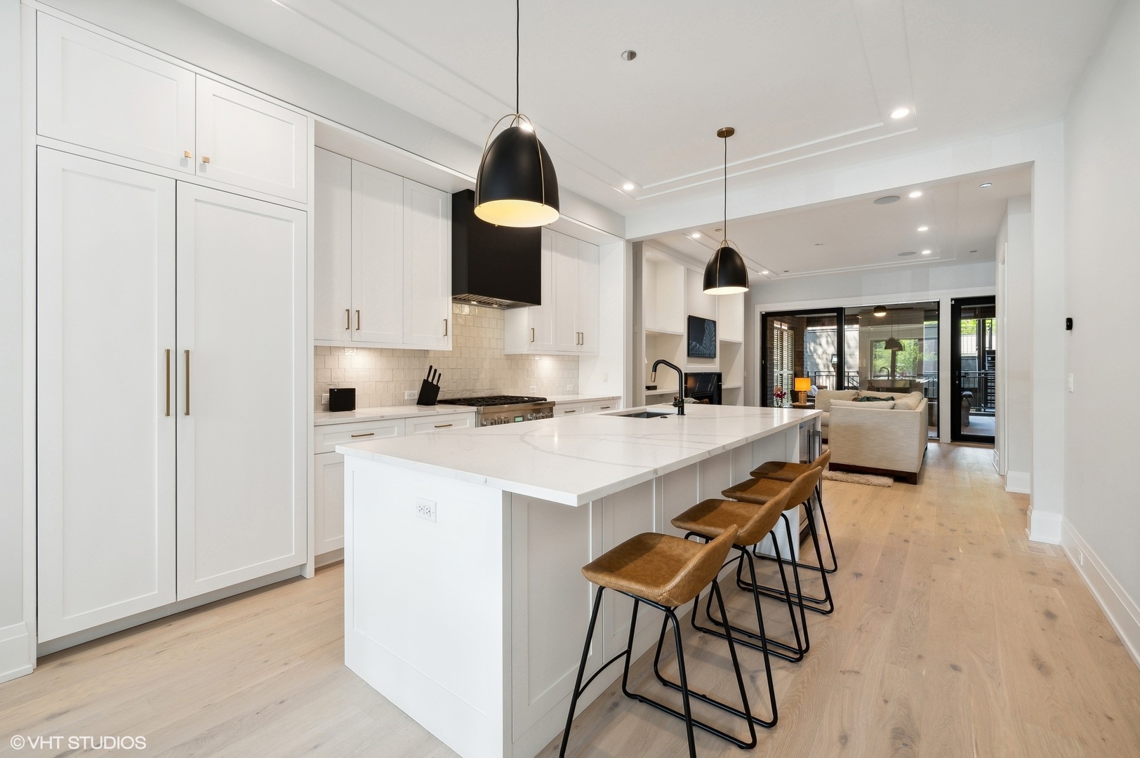 Stunning Lincoln Park 4 bedroom 3.5 bathroom new construction duplex down for rent! This massive duplex down lives just like a single family home. The sprawling first floor features modern aesthetics, wide plank white oak floors, floor-to-ceiling windows, a separate dining space, and a floor plan perfect for entertaining. Open to both the family room and the dining/living room, this chef's kitchen features high end Thermador appliances, an oversized kitchen island, custom cabinetry, a separate beverage fridge, a vented range, under cabinet lighting, and loads of kitchen storage. Centered around the gas fireplace and the built-ins, the family room is ideal for large gatherings, and leads out to a covered private walk-out terrace that is equipped with a gas line, recessed lightings, and a gas fireplace and ceiling mounted heaters so you can enjoy this space year round. For more outdoor space, take the private staircase down to your personal fenced in yard or make your way up to your private garage rooftop deck outfitted with astro turf and a privacy wall. Downstairs is outfitted with radiant heated floors, four bedrooms and three full baths. The king sized primary suite has a custom walk-in closet, and a spa-like ensuite bathroom featuring a double vanity, an oversized steam shower, and a separate soaking tub. Down the hall you will find three additional large and accommodating bedrooms, one of which has an ensuite bathroom. The building offers the Butterfly Intercom System for added security. An indoor heated garage spot and exterior storage is included. Prime Lincoln Park location! ***Unit can come furnished for extra***